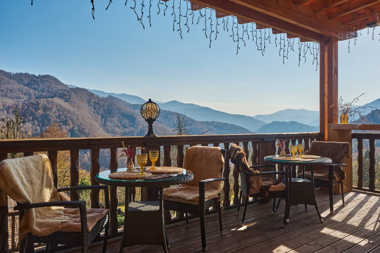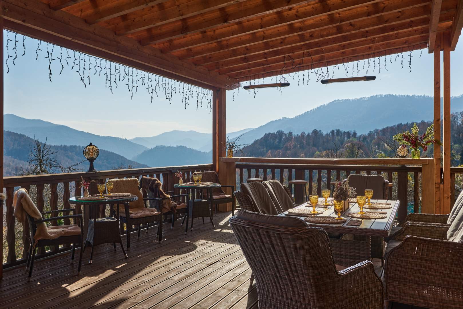 Наше меню построено c акцентом на локальное фермерство — большинство ингредиентов мы получаем от близлежащих хозяйств, что гарантирует свежесть и аутентичность каждого блюда. Вечерние часы особенно прекрасны: за ужином вы сможете наблюдать зрелище заката, когда солнце медленно скрывается за горными пиками.