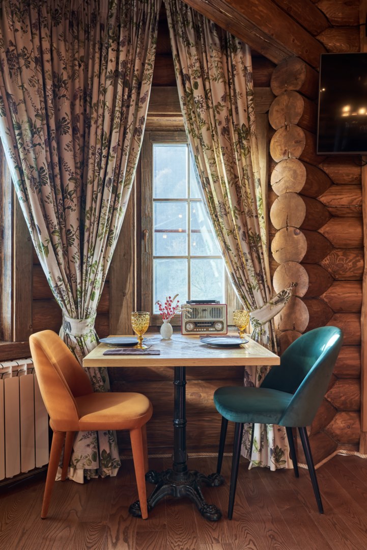 Интерьер кафе наполнен деталями, создающими особое настроение. Стены украшены художественными полотнами художников, а домашняя библиотека погрузит в мир литературы.