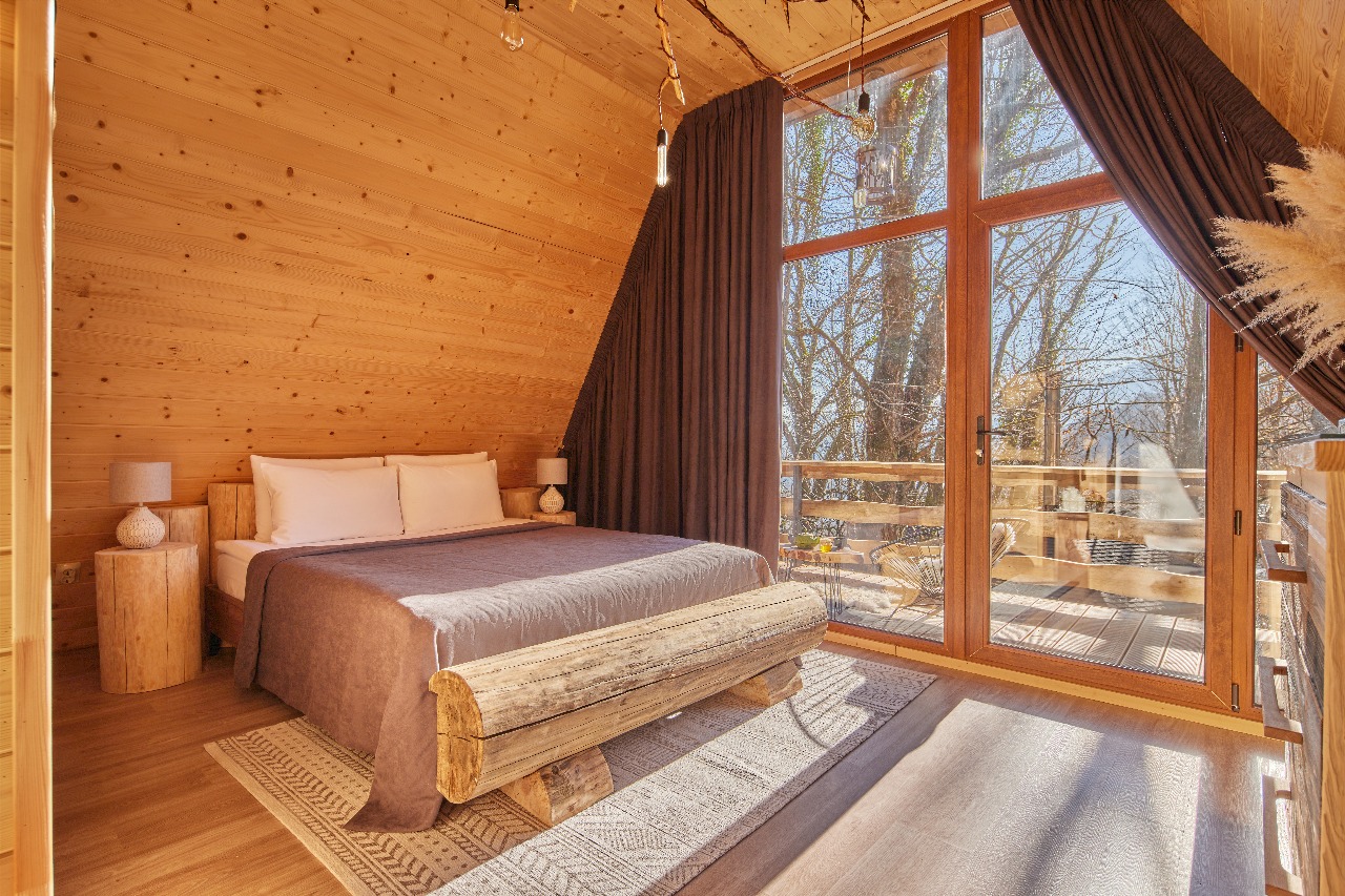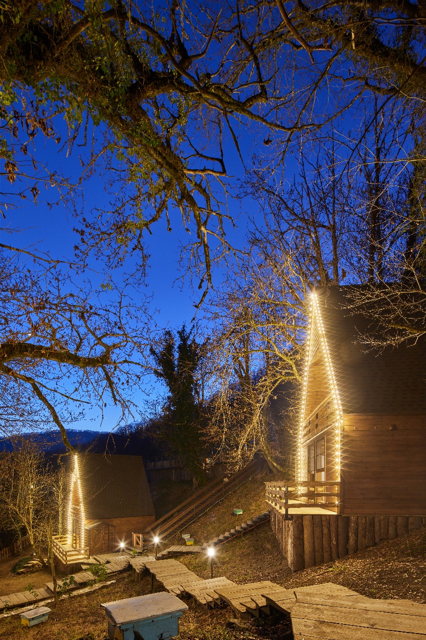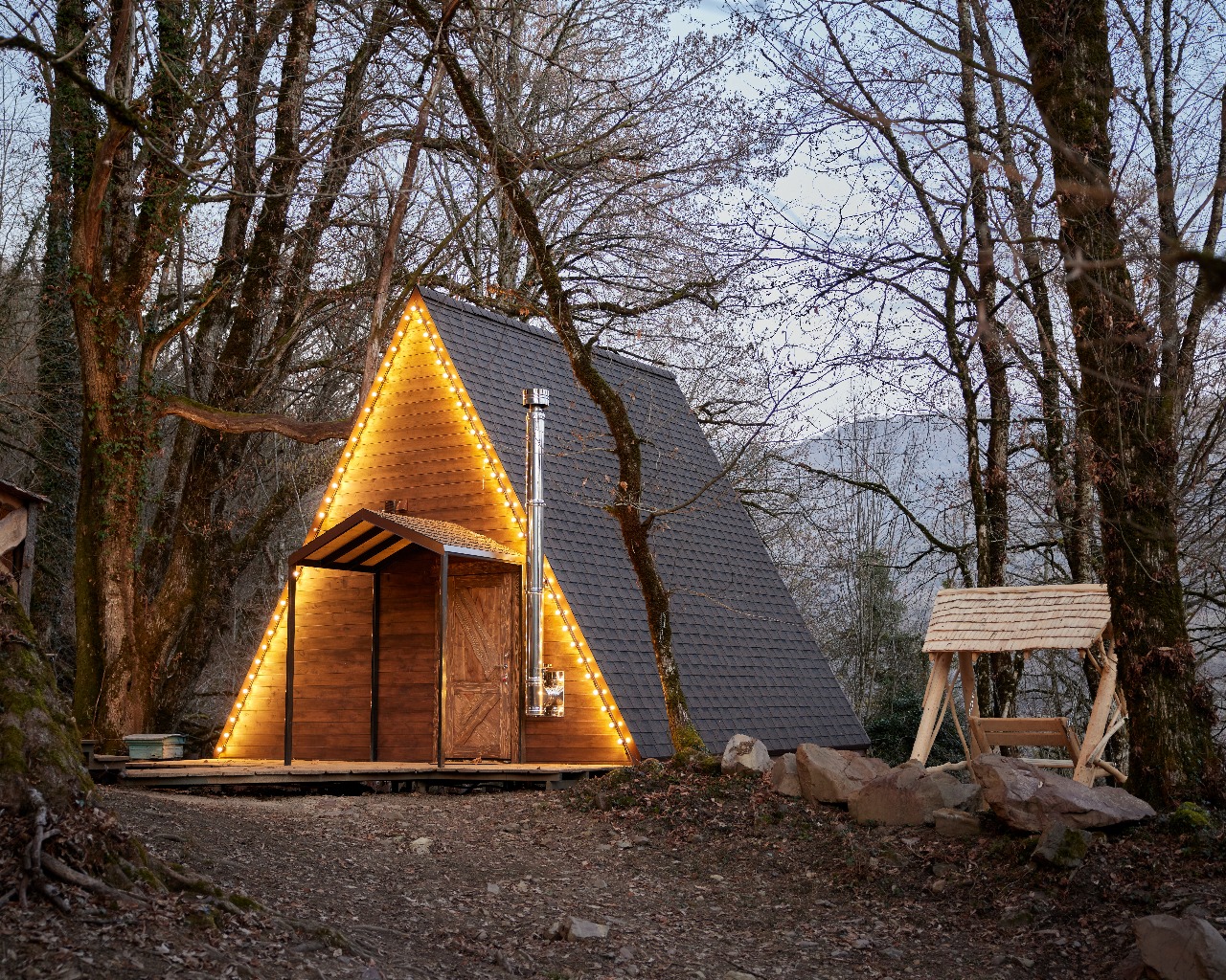 Глэмпинг расположен в сердце леса на горном склоне, предлагает уникальный опыт ночевки в лесу под звёздным небом, сохраняя при этом все удобства. Погружение в природу, величие гор и трели птиц создают волшебную атмосферу для влюблённых и тех, кто ищет вдохновения.