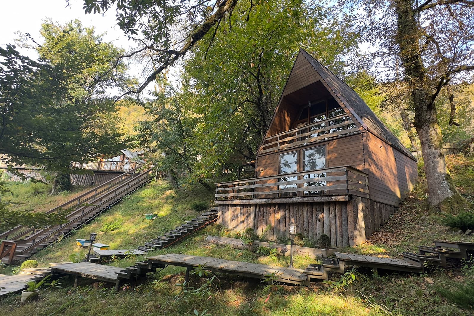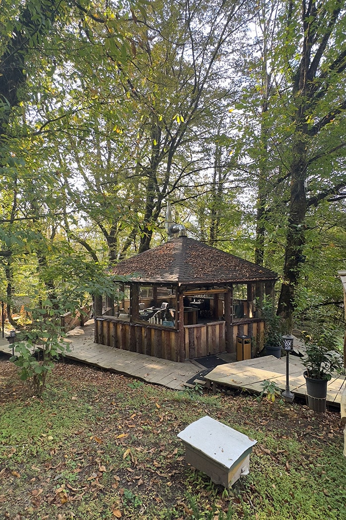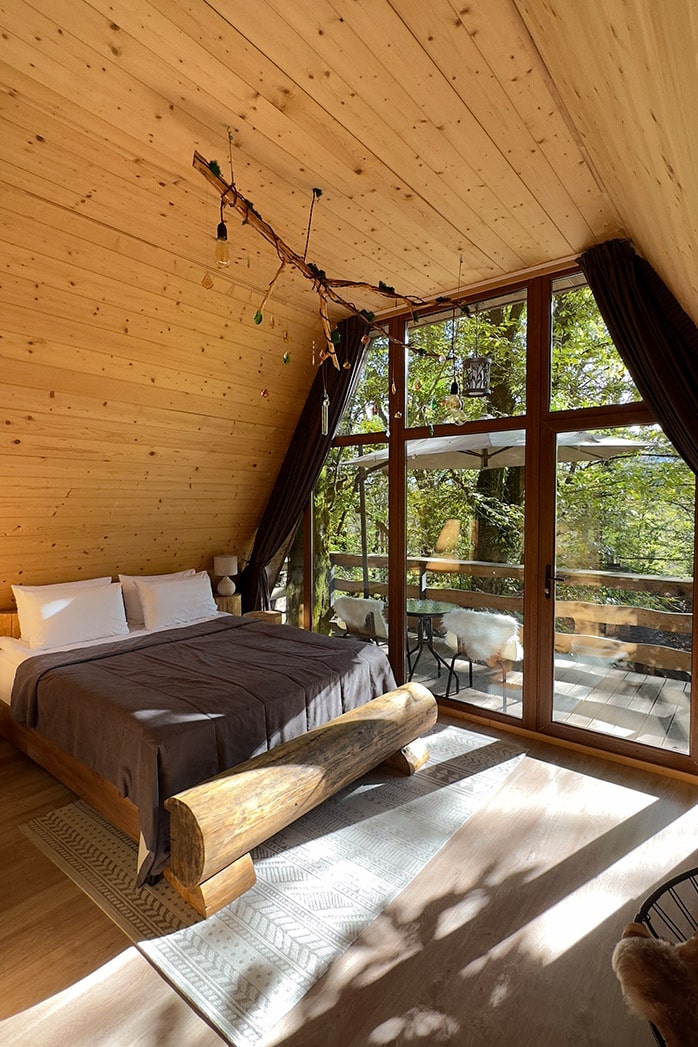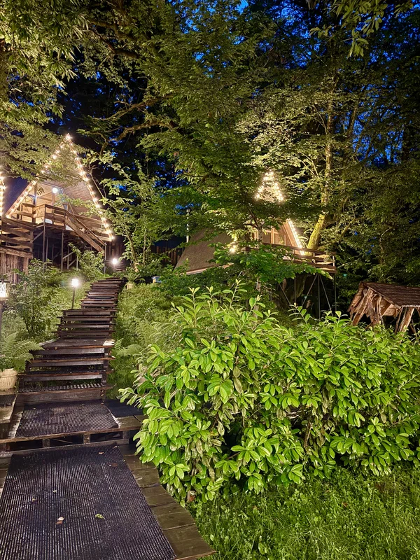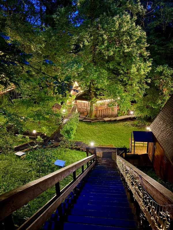 Глэмпинг расположен в сердце леса на горном склоне, предлагает уникальный опыт ночевки в лесу под звёздным небом, сохраняя при этом все удобства. Погружение в природу, величие гор и трели птиц создают волшебную атмосферу для влюблённых и тех, кто ищет вдохновения.