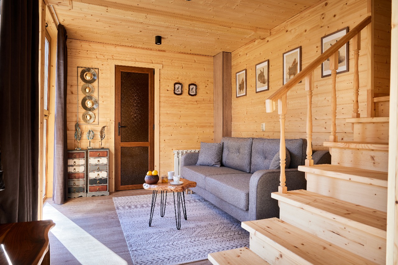 На территории 5 эко-лоджей с дизайнерским интерьером, а в центре глемпинга расположена крытая мангальная зона.