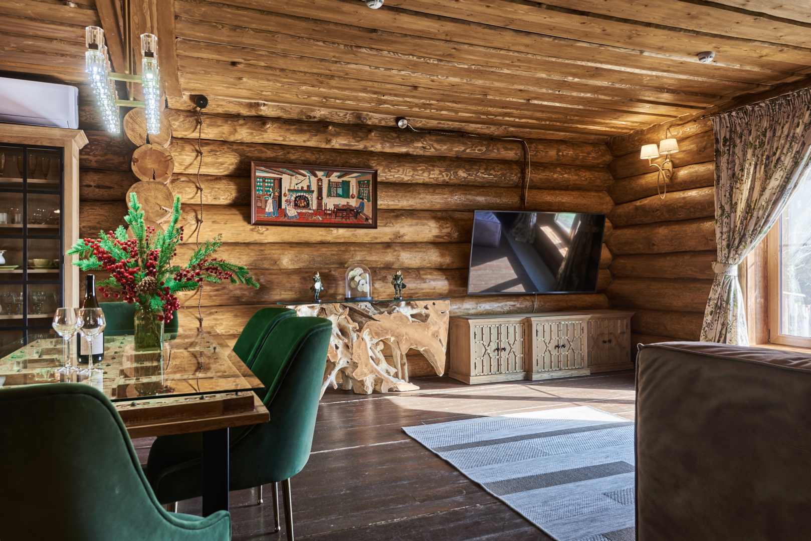 Интерьер оформлен исключительной мебелью из эко-материалов, а детали отделки выполнены вручную мастерами‑ремесленниками. Просторные помещения и продуманная планировка делают шале идеальным местом для отдыха в кругу семьи, близких или большой компании друзей.