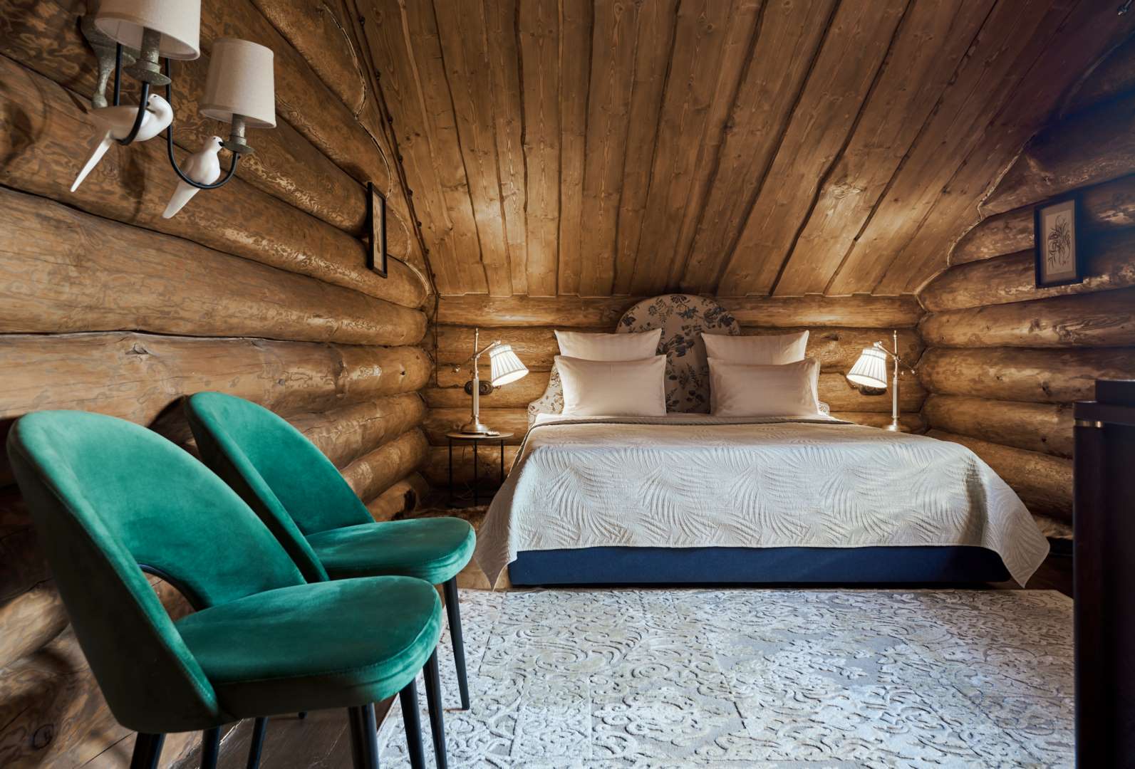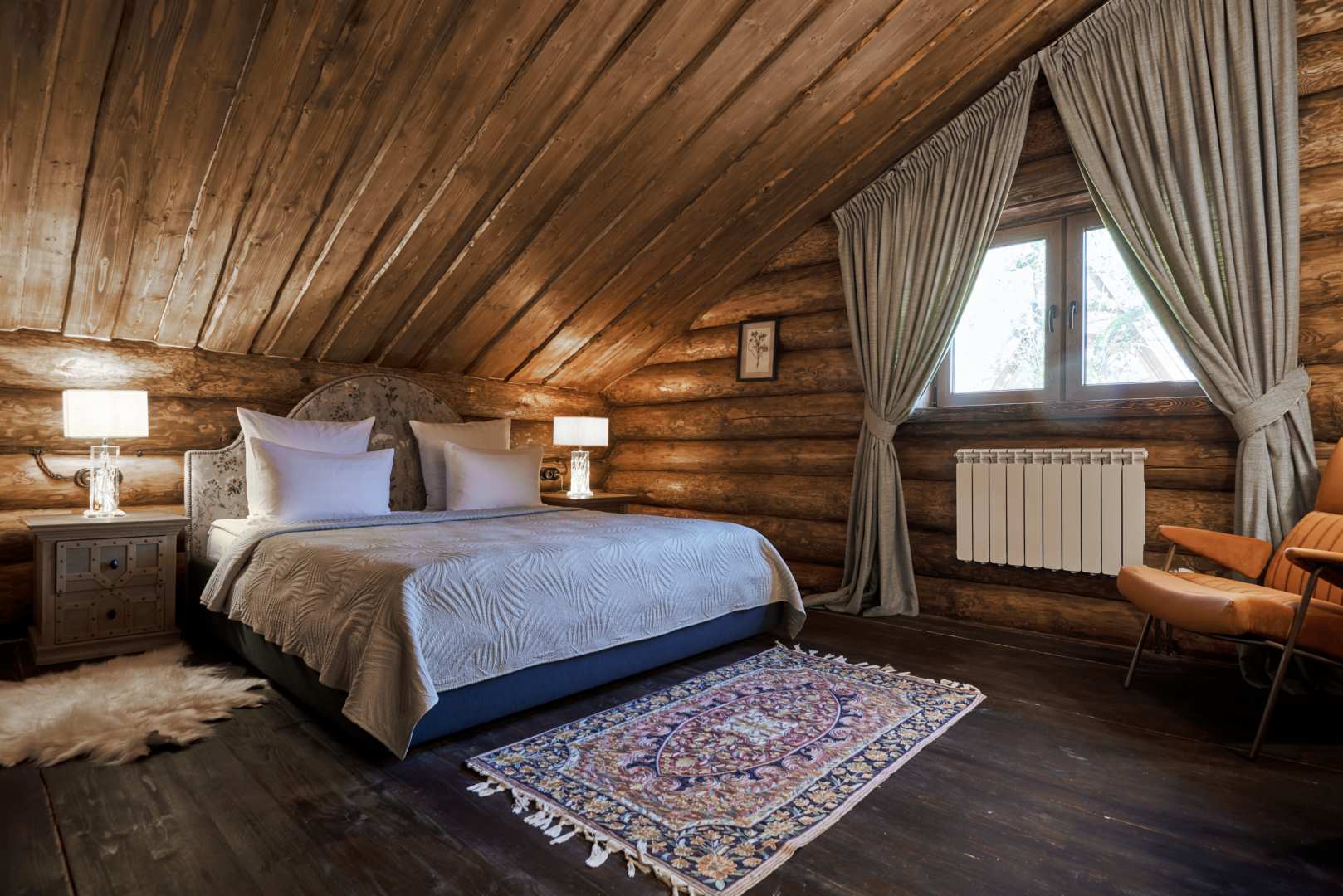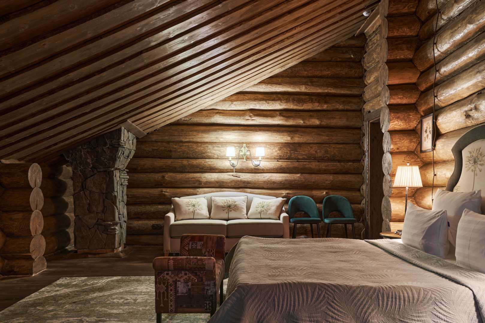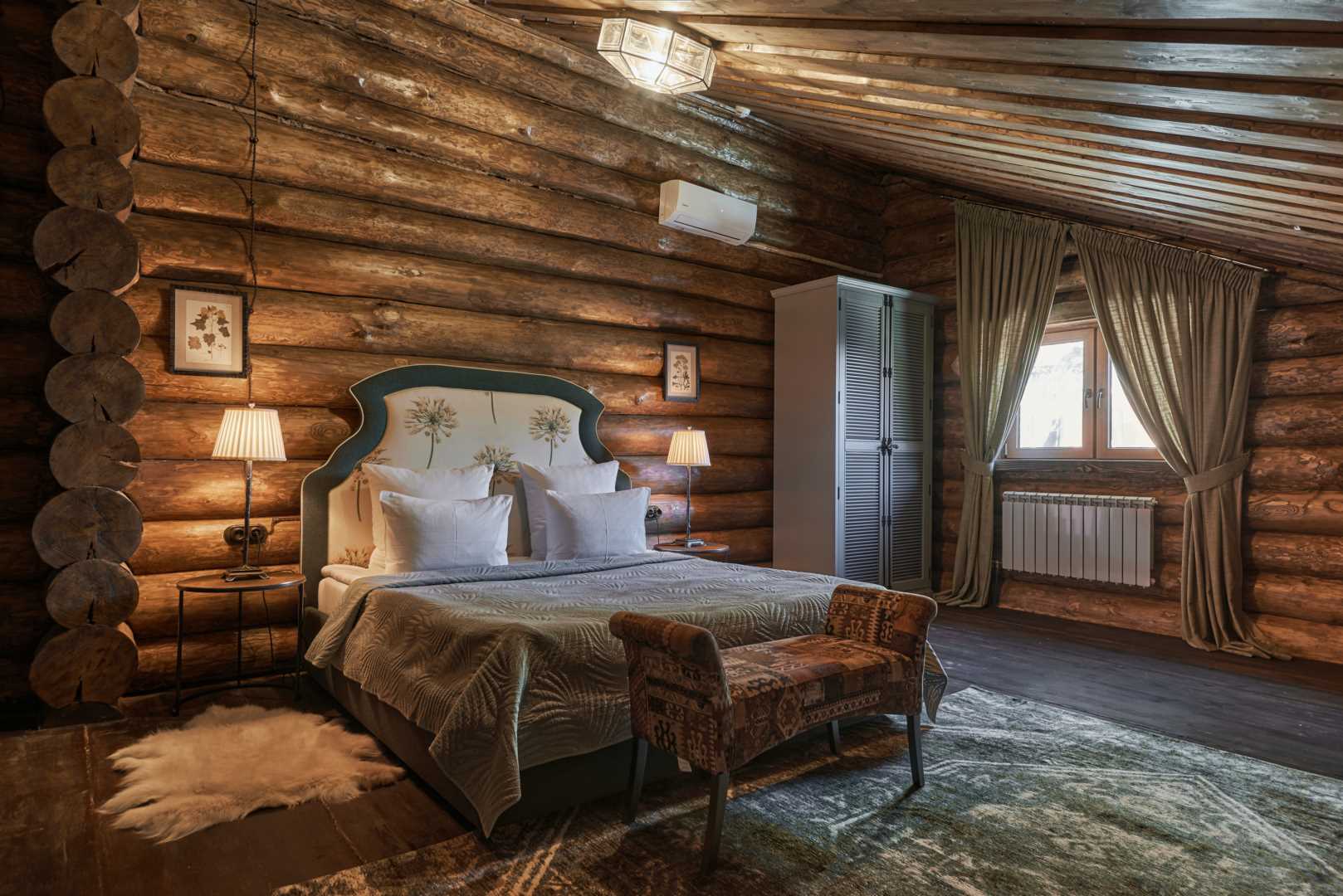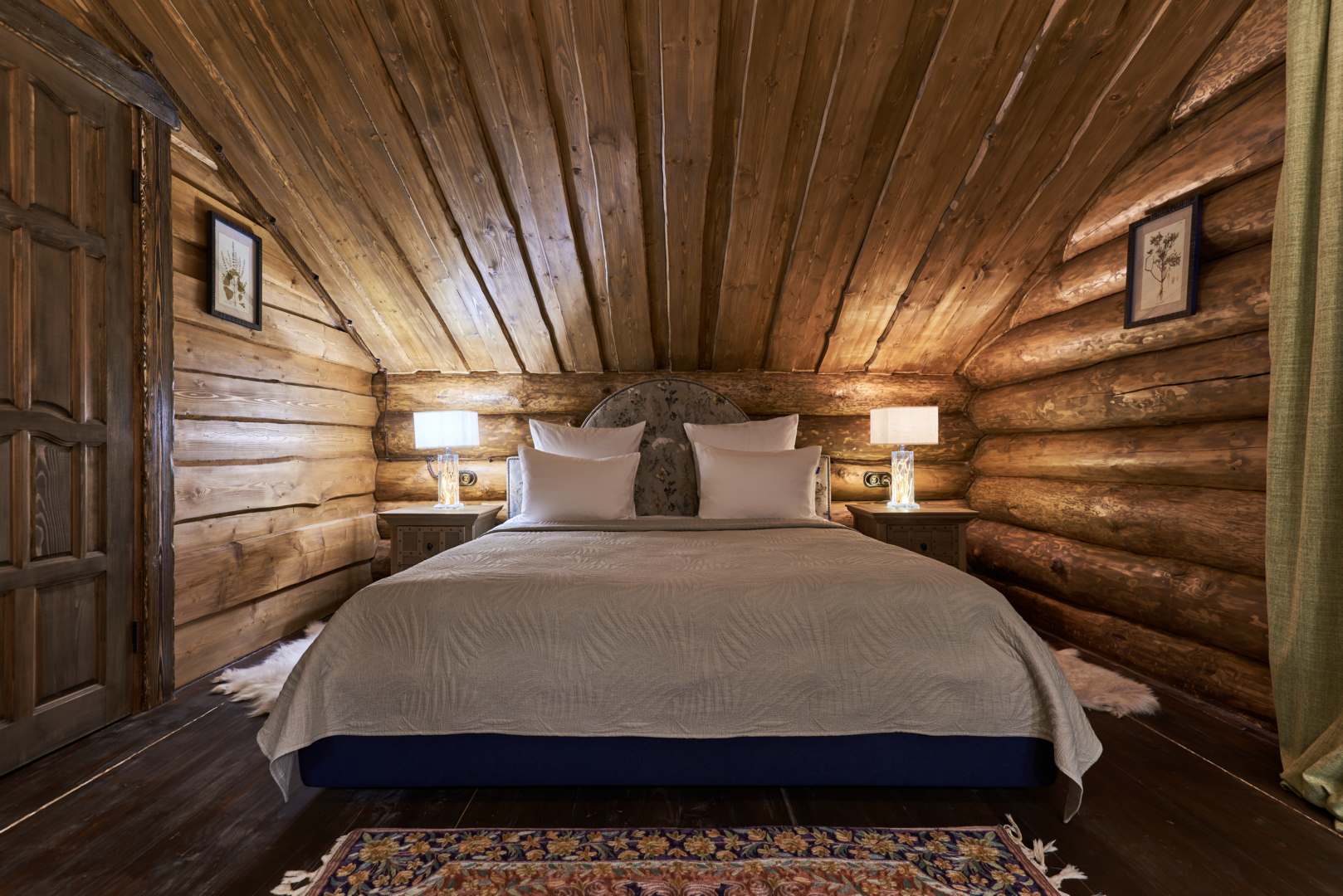 На территории эко‑отеля расположено двухэтажное деревянное шале — просторная резиденция, созданная для гостей, ценящих утончённый комфорт и масштабное пространство. Это элегантная резиденция, отвечающая запросам гостей, которые предпочитают исключительный уровень комфорта и простор.